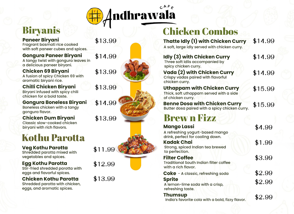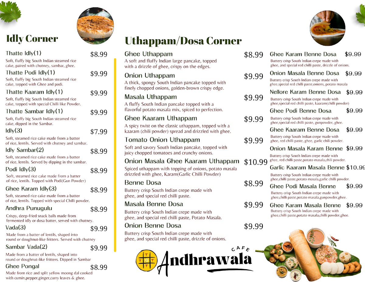 Welcome to Andhrawala Cafe, a hidden gem located at 4639 N Shallowford Rd, Atlanta. This charming eatery invites you to indulge in a culinary journey through South India with an authentic menu that reflects rich traditions. Customers rave about the delectable Ghee Benne Dosa, a buttery delight, and the fragrant Goat Biryani, both infused with vibrant spices.